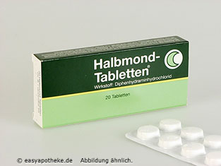 Die Halbmond Tabletten werden zur Behandlung von Ein- und Durchschlafstörungen angewendet. Die Tabletten enthalten den Wirkstoff Diphenhydramin. Nicht jede Schlafstörung sollte gleich mit Medikamenten behandelt werden, sondern zuerst sollte die Ursache der Schlafstörungen herausgefunden werden. Der enthaltene Wirkstoff blockiert die Rezeptoren, an welchen der Botenstoff Histamin seine Eigenschaften entfalten würde. Die Halbmond Tabletten regulieren die natürlichen Schlafphasen und sorgen für eine Linderung der Schlafstörungen.