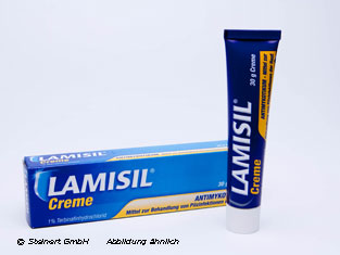 Die Lamisil Creme wird zur aeusserlichen Behandlung von Haut- und Fusspilzinfektionen angewendet. Die Creme enthaelt den Wirkstoff Terbinafin. Der Wirkstoff ist in der Lage alle Pilzerreger wirksam abzutoeten. Dadurch, dass der Wirkstoff in den obersten Hautschichten ein Wirkstoffdepot aufbaut, hält die Wirkung auch nach Beendigung der Behandlung noch einige Zeit an. Die Behandlungsdauer sollte eine Woche nicht unterschreiten, da sonst die Gefahr besteht, dass noch Erreger ueberlebt haben und die Infektion erneut ausbricht. Die Lamisil Creme lindert die typischen Beschwerden wie Juckreiz und Roetungen.